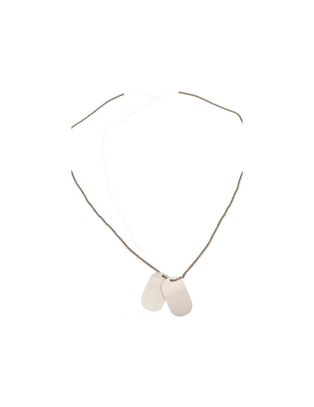 Placas militares identificativas plateadas con cadena de aluminio.