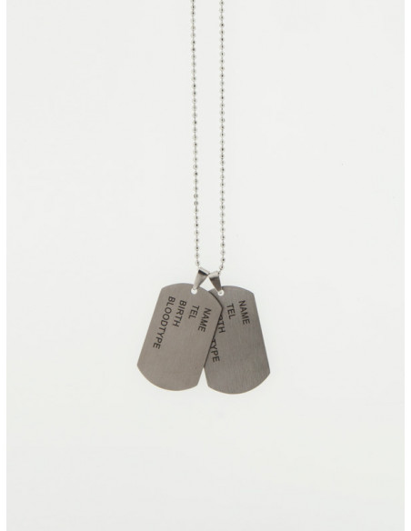 Consta de una cadena con dos placas metálicas identificativas de metal.