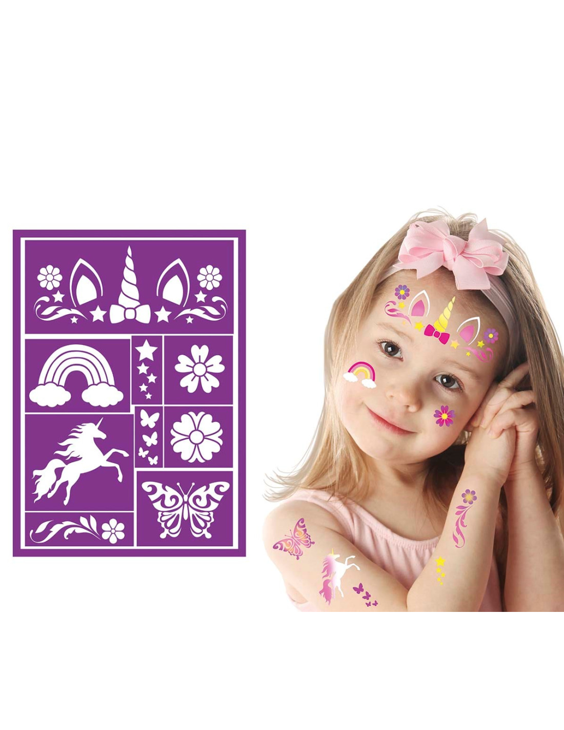 Plantilla maquillaje fantasía para los disfraces de fantasía de las peques de la casa. Hay dos modelos disponibles: el modelo 1 tiene motivos de unicornio y fantasía y el segundo tiene motivos de princesa.