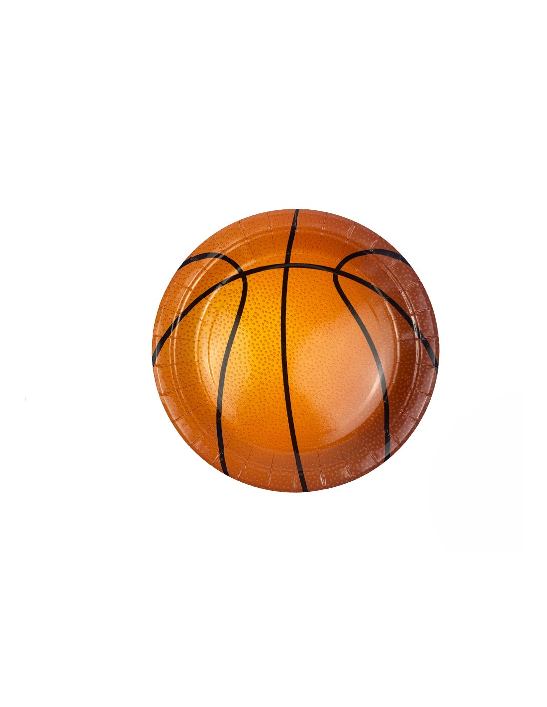 Platos con diseño de balón de baloncesto para decorar tu fiesta temática y/o cumpleaños. Pack de 6 platos de cartón de 23cm.