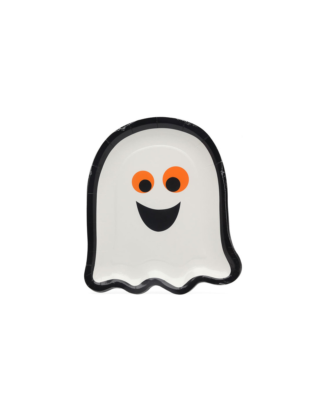 Platos Halloween fantasma que incluye 6 platos de cartón de 18x22cm.