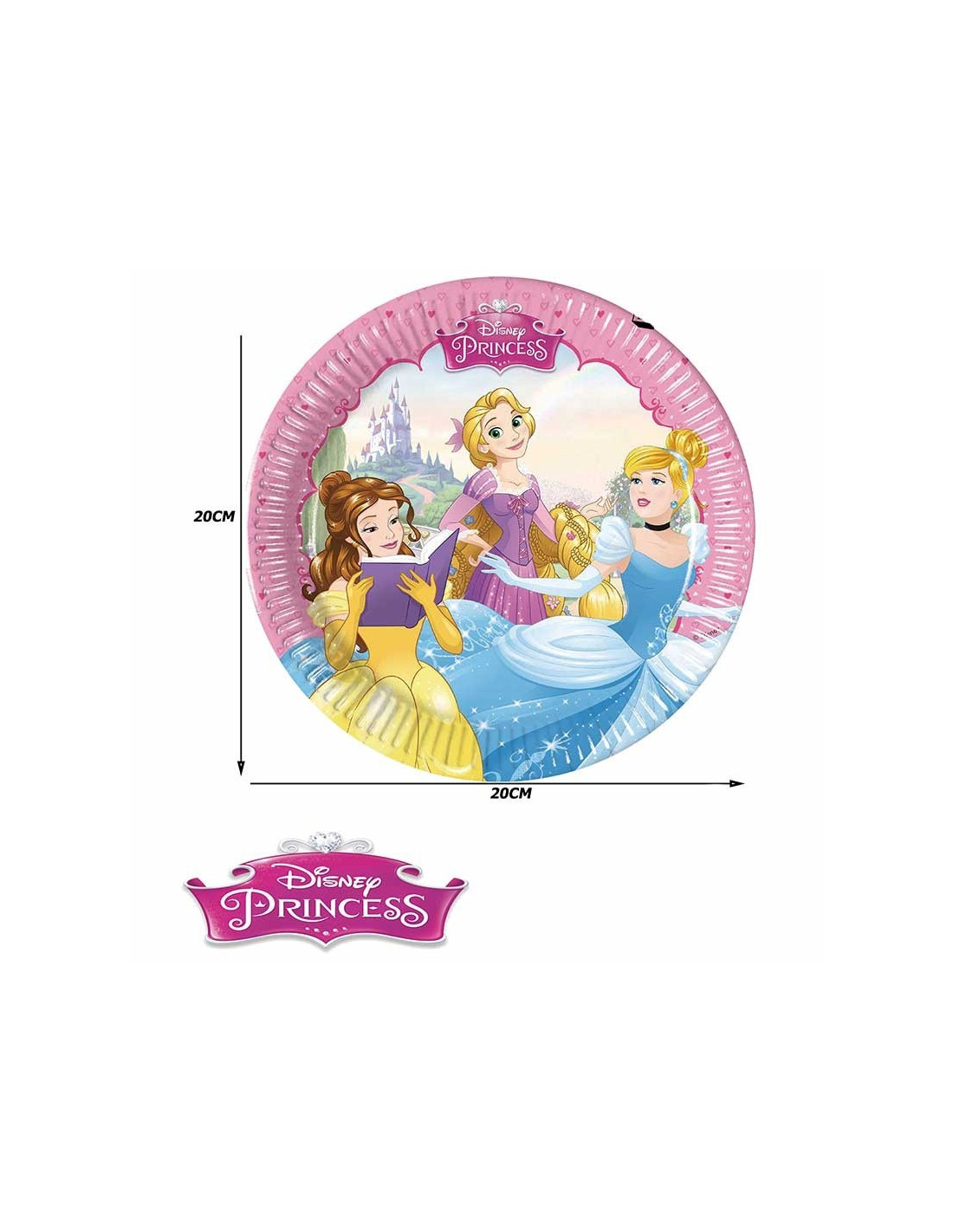 Platos Princesas Disney que incluye un pack de 6 platos de cartón de 20cm de diámetro.