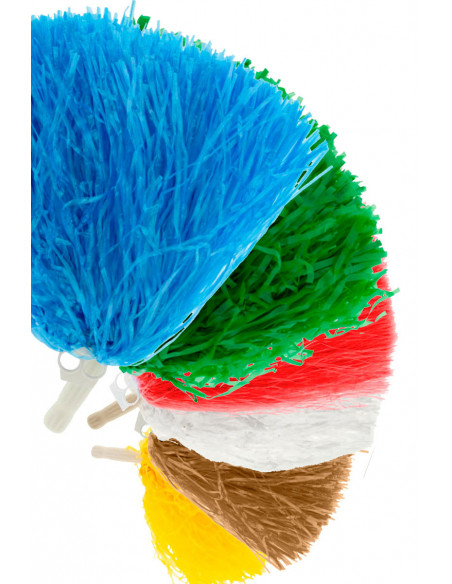 Anima como nunca al quarterback que vuelve locas a todas las chicas del insti con este pompón de cheerleader. Incluye un magnífico pompón de cheerleader fabricado de cuerdas de rafia, con un mango blanco de plástico de pvc rígido, de 40cm de longitud y disponible en diferentes colores: blanco, azul, marrón, rojo, amarillo, verde y multicolor.