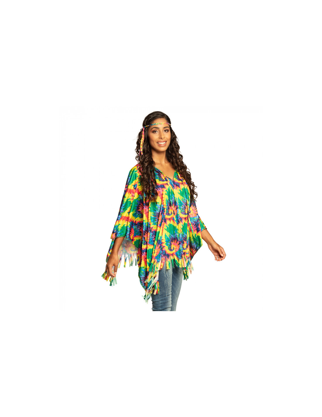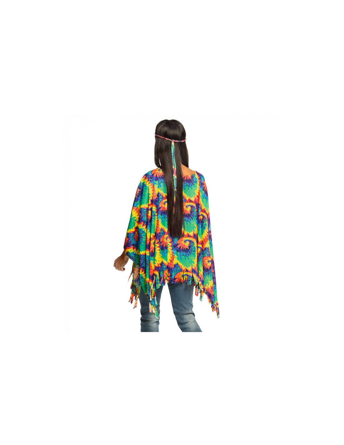 Colorido poncho hippie para mujer de efecto tie dye para Carnaval y fiestas temáticas de los años 60 o hippies.
