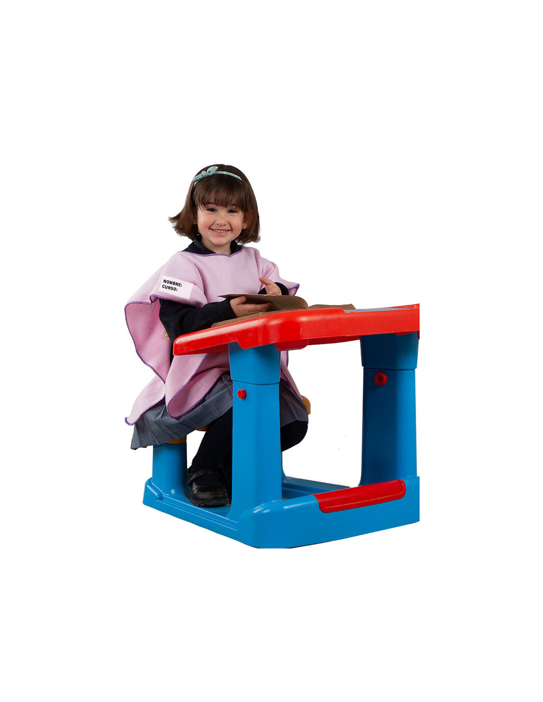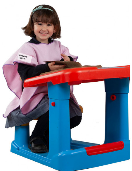 Estos ponchos personalizados tienen un cuadrado blanco dónde se puede escribir el nombre y curso del niño o niña para identificarlos y evitar intercambios.