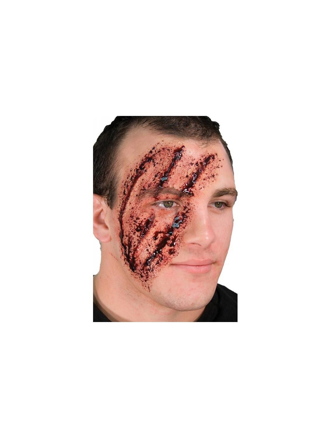 Cicatriz de arañazo gigante de látex para Halloween o para tus noches más terroríficas. Incluye una cicatriz de arañazo gigante, fabricada en látex de gran calidad, simulando las marcas que una garra dejaría en la cara de una persona.