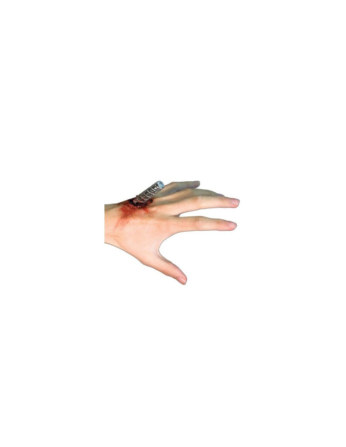 Incluye una escalofriante prótesis que simula una barra metálica incrustada en la mano. No olvides completar este kit con un pegamento apropiado y sangre líquida para conseguir este aspecto tan desgarrador.