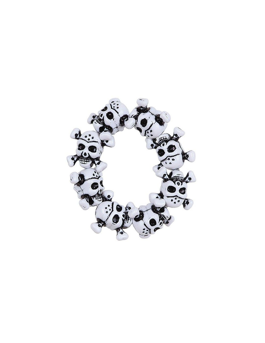 Complementa tu disfraz de pirata o brujo de Halloween con esta escalofriante pulsera calaveras.