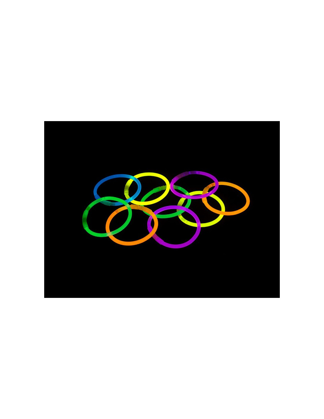 Pulseras luminosas fluorescentes surtidas que incluye una caja con 50 unidades en colores surtidos.