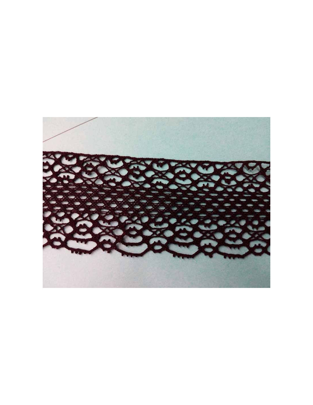 Encaje de puntilla de bolillo negra de algodón, de 50mm de anchura aproximadamente. Se vende por metros. Unidad mínima de compra 1m.