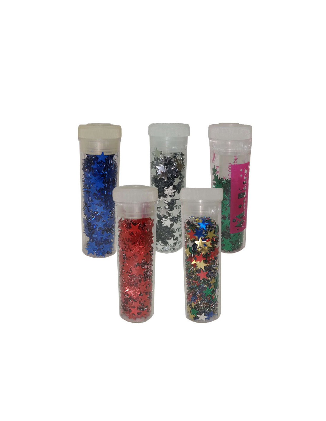 Purpurina de estrellitas que incluye un tubo con 10 gramos de purpurina con forma de estrella.