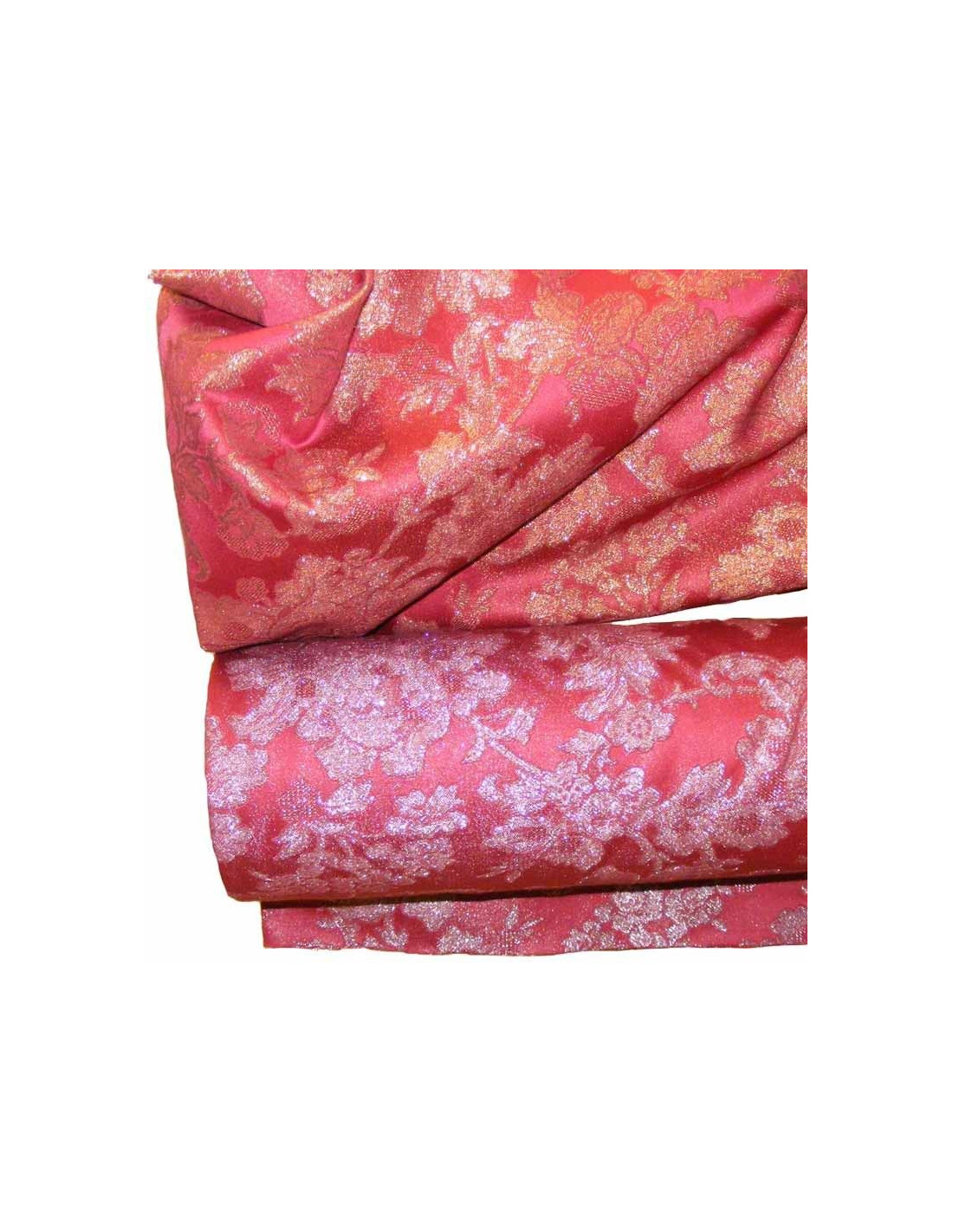 Tejido raso damasco fabricado en poliéster 100%. La tela tiene una anchura de 280 cm.Tejido de raso muy resistente, que hace dibujo de flores por las dos caras. Utilizado en confección de trajes regionales y tapiceria.
