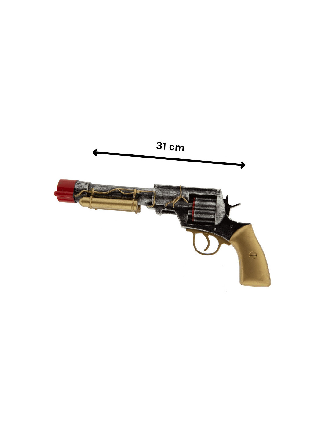 Revólver Steampunk que incluye una pistola de plástico de medidas 32 x 13cm.