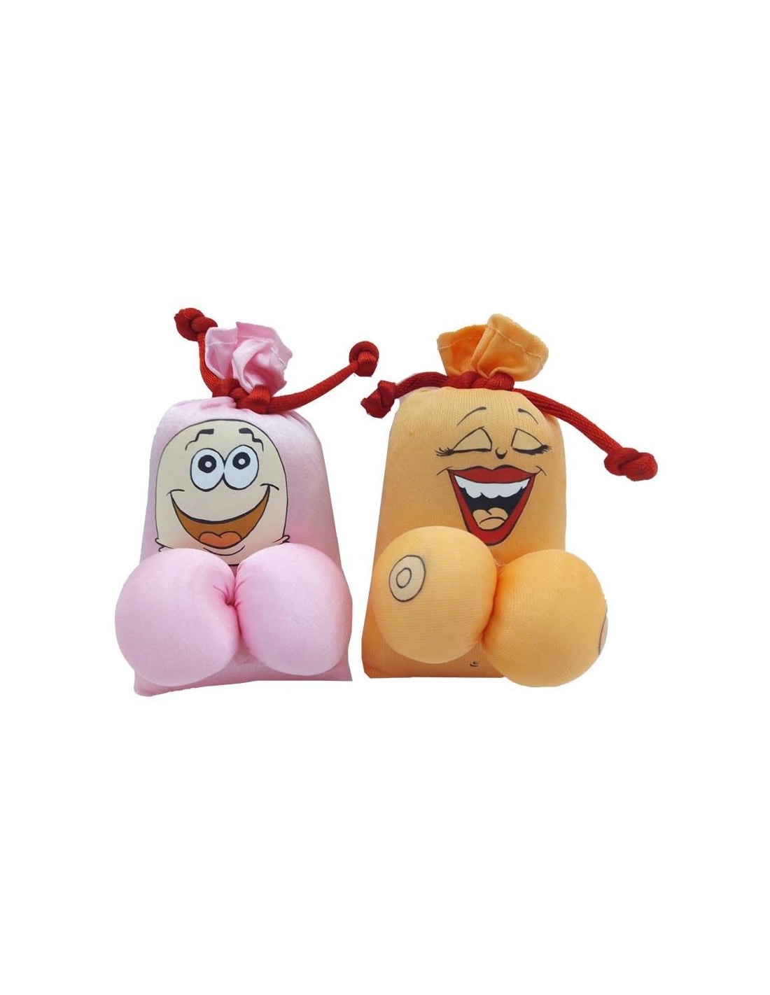 Saquito de 10cm con forma de pene y una cara divertida dibujada en el frente. Dispone de un cordón para colgar. Al apretar suenan los gemidos de una mujer.