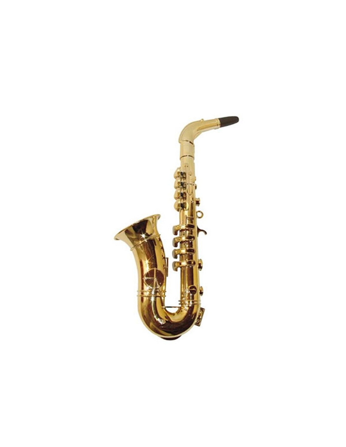 Saxofon de plastico con el que se pueden interpretar hasta 8 notas musicales