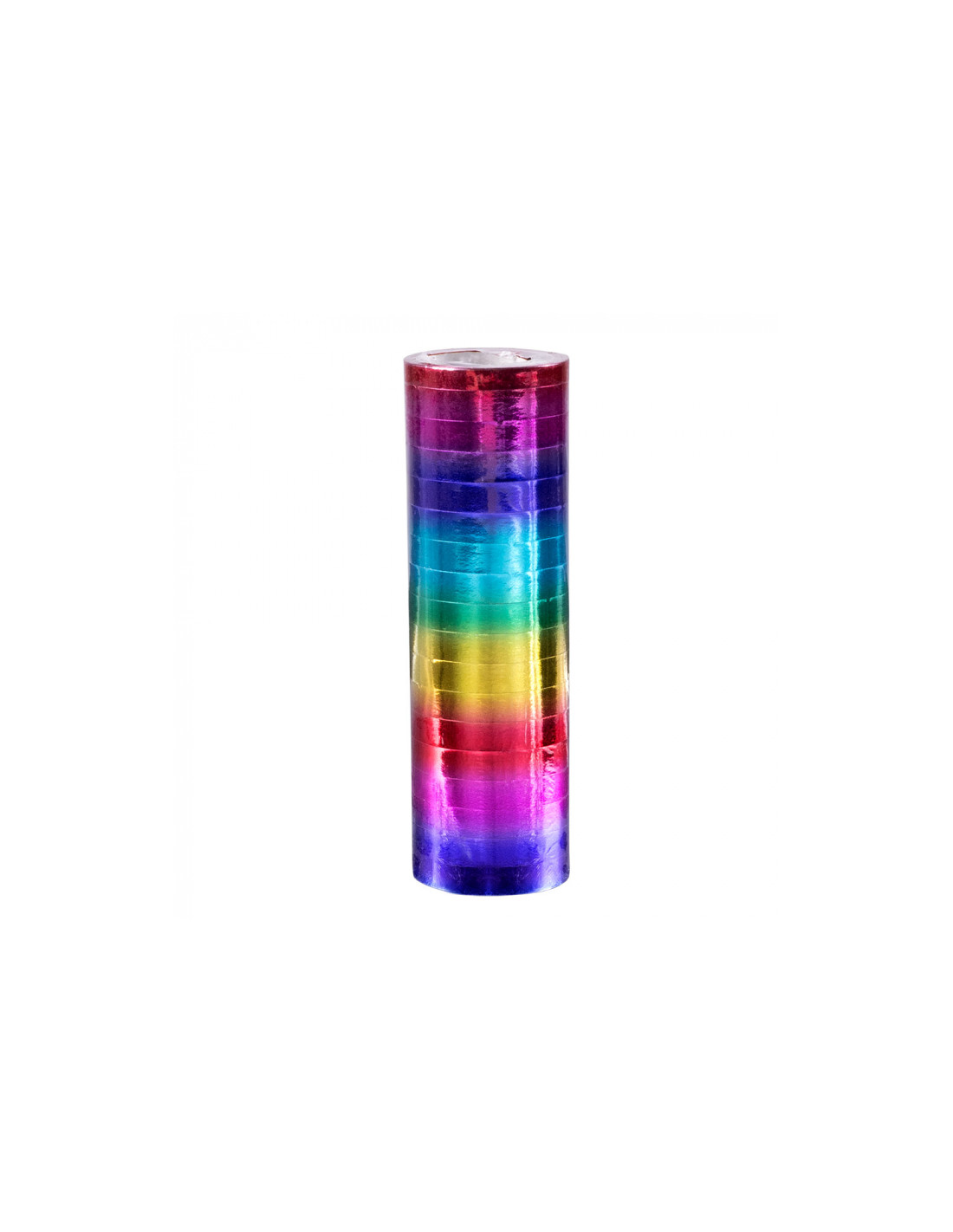 Contiene dos tubos de serpentina multicolor con efecto metalizado. Cada tubo contiene 18 rollos.