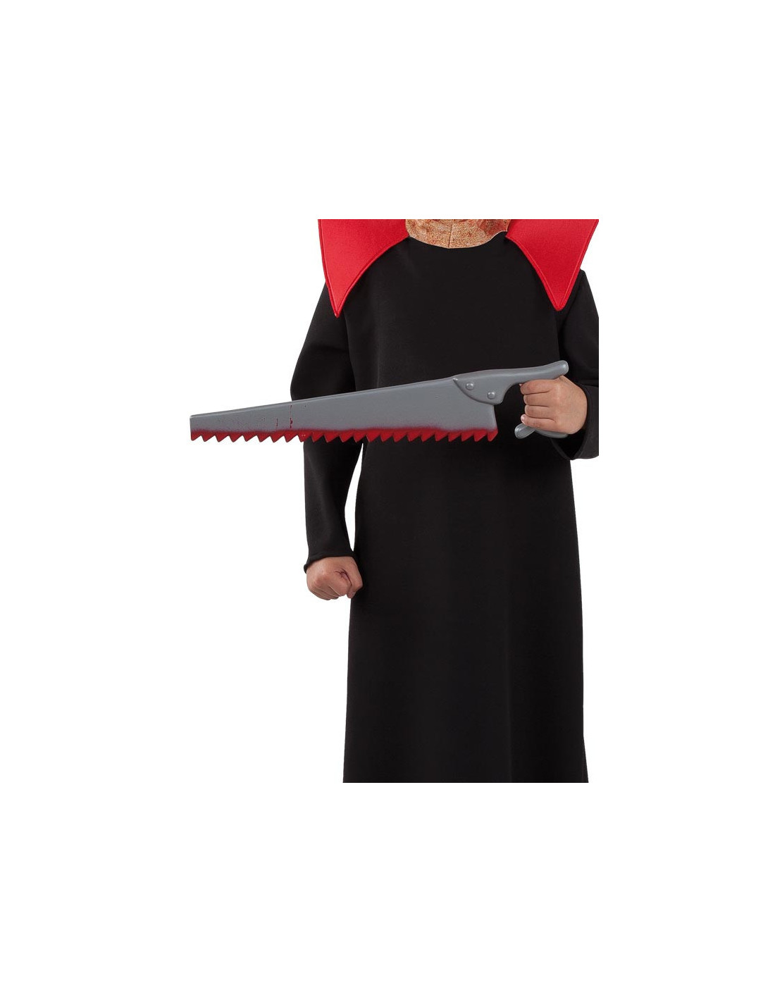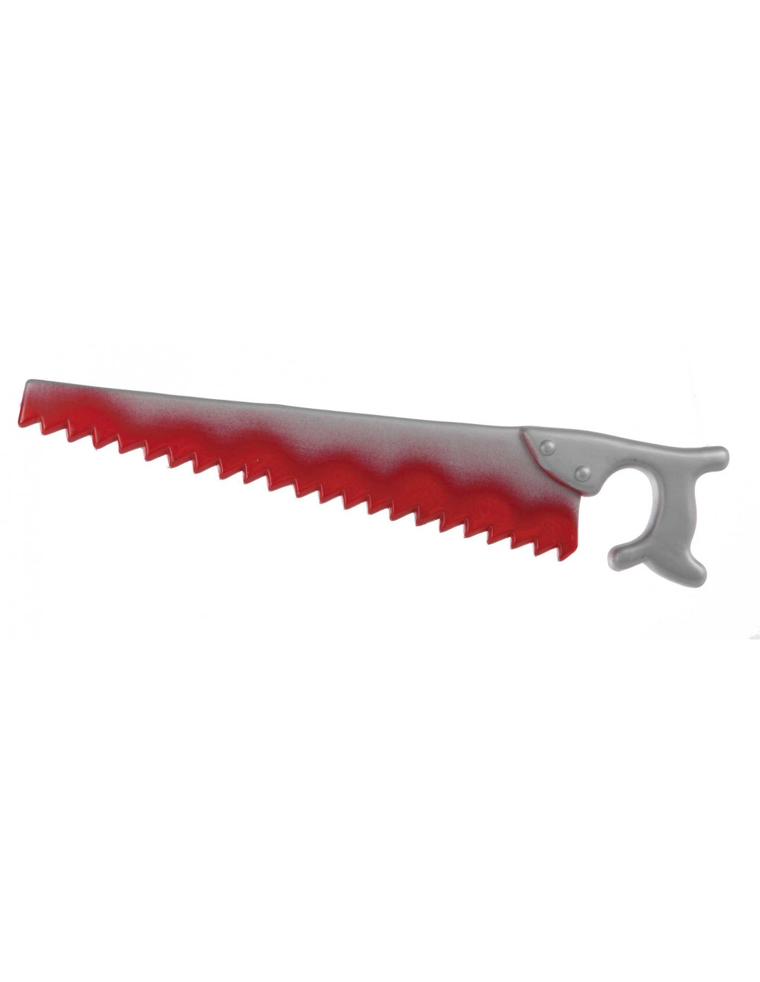 Serrucho de plastico con pintura roja simulando sangre de largo 52 cm.