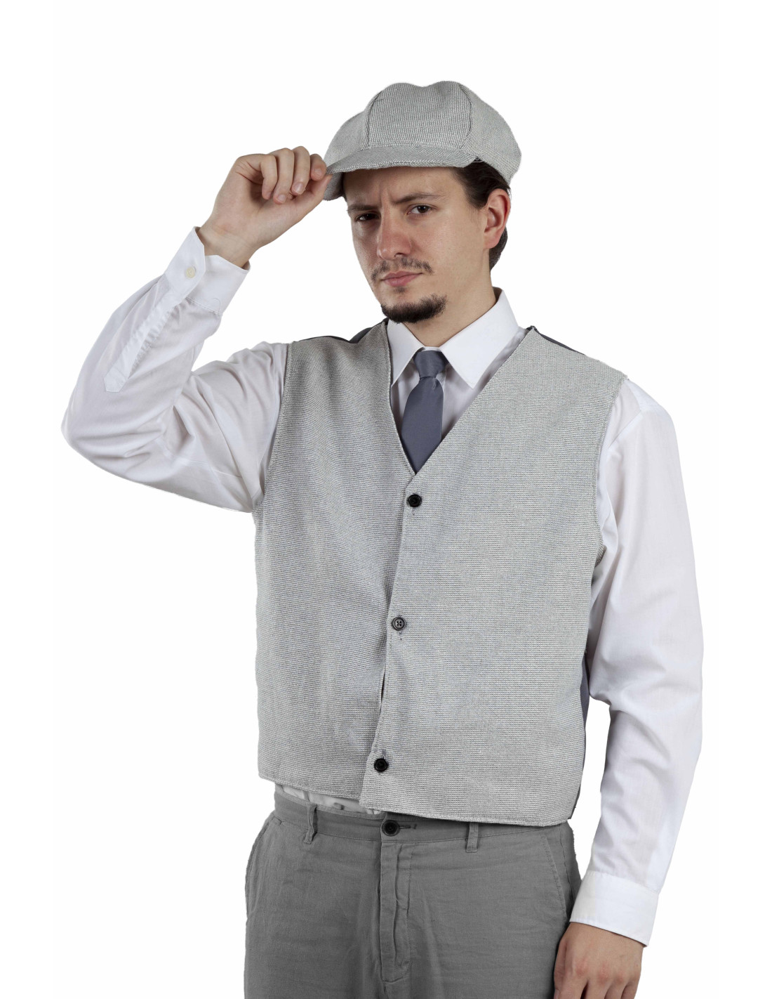 Set años 20 gris para adulto. Que incluye chaleco y gorra.