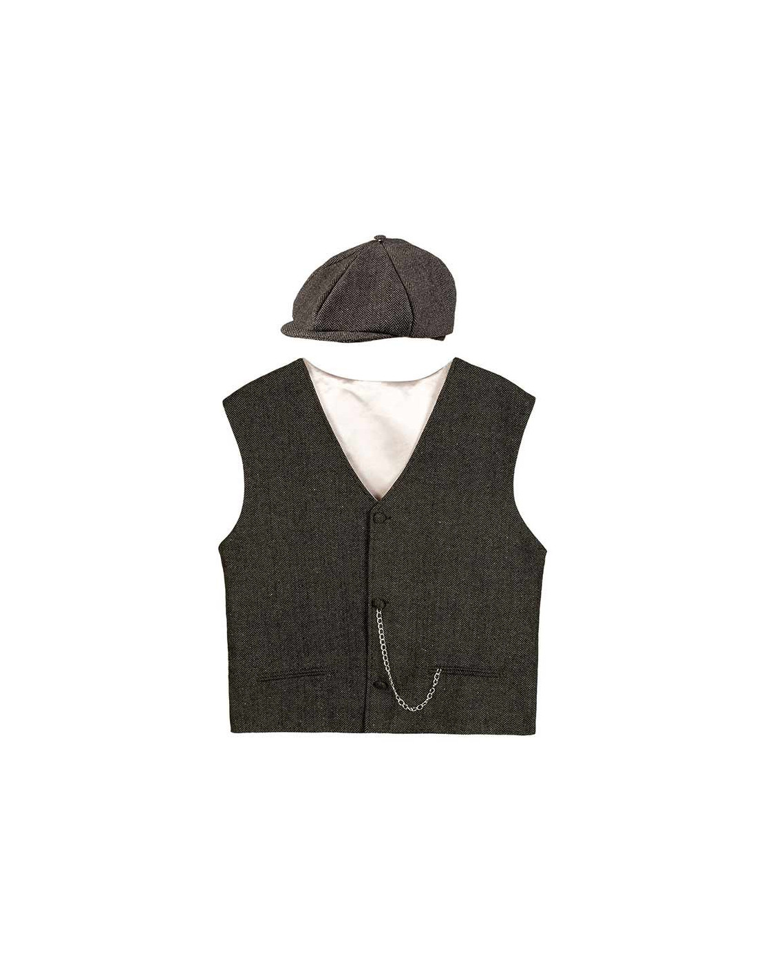 Contiene un chaleco conbotones y cadena, y una gorra estilo boina.