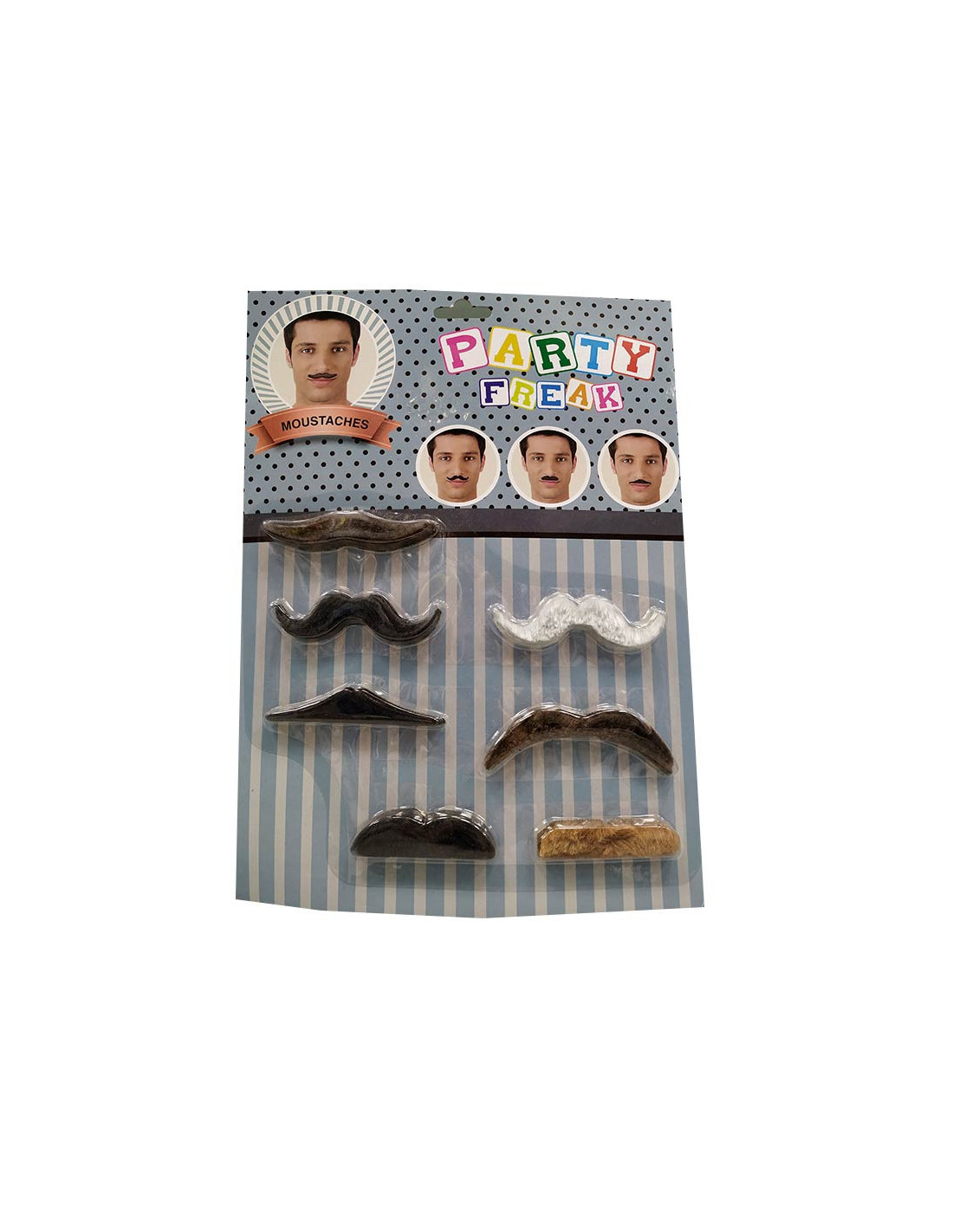 Set bigotes surtidos que incluye 7 bigotes con distintas formas y colores.