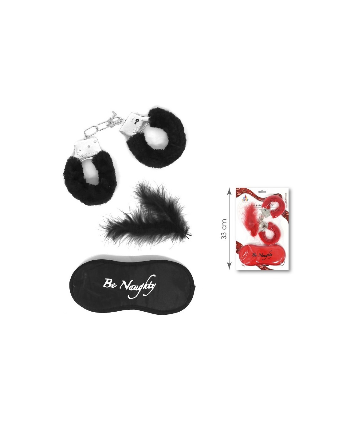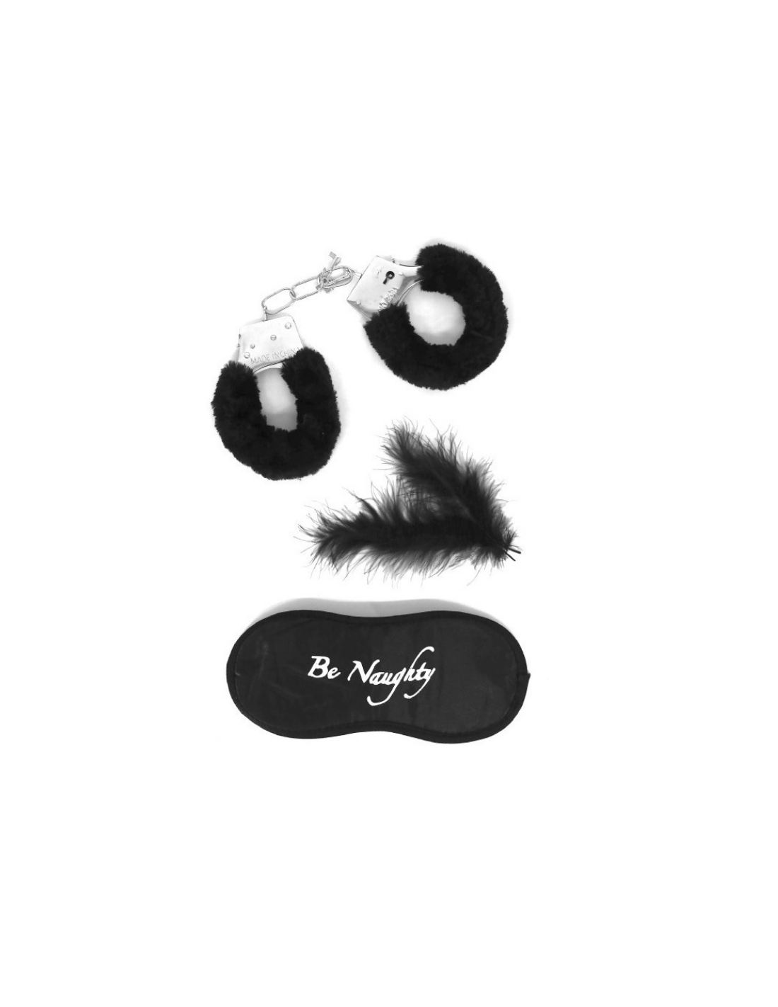 Set de esposas sexy para una noche diferente con tu pareja. Incluye antifaz y plumas para intensificar los sentidos y esposas forradas con pelo para un tacto más suave.