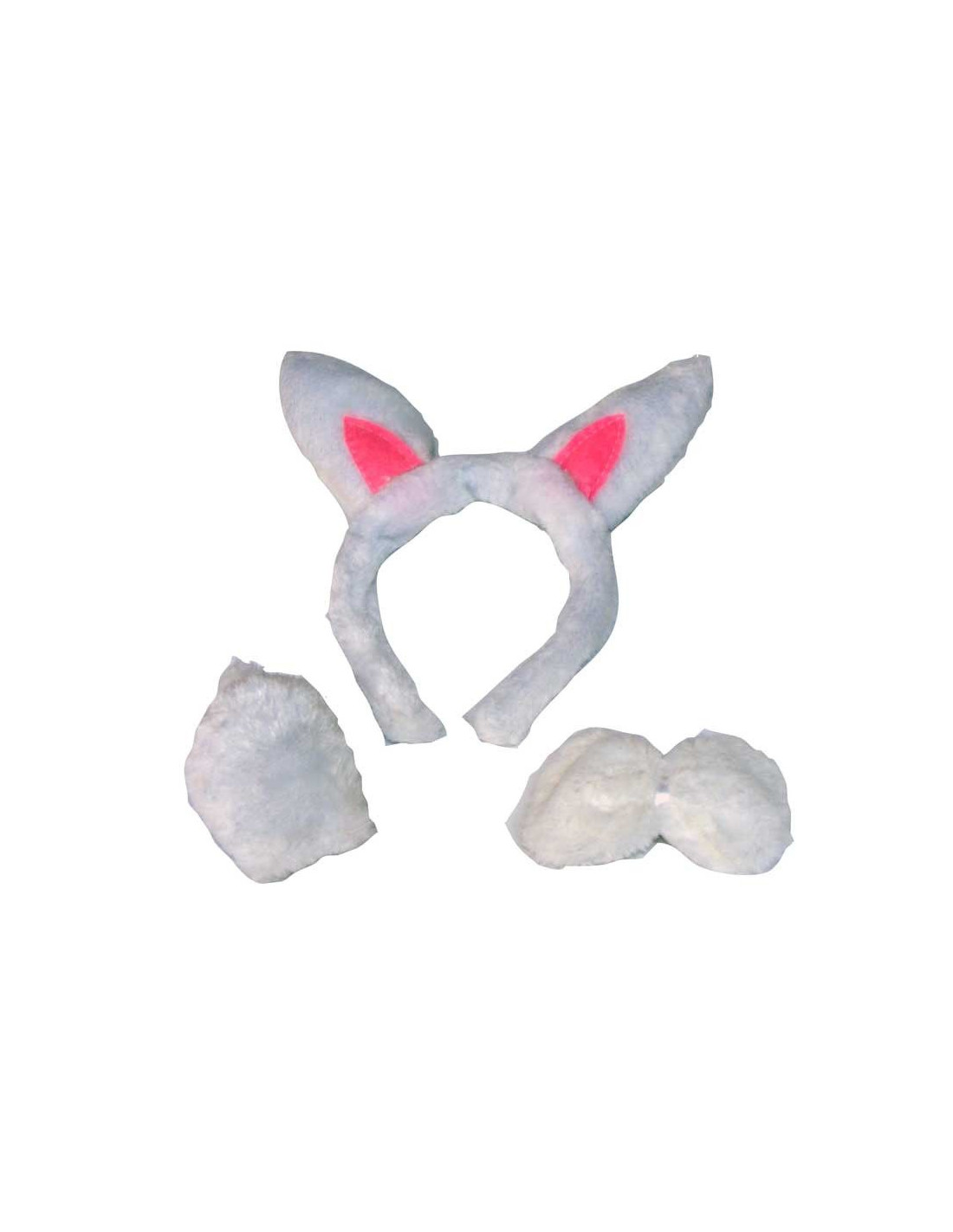 Conjunto de diadema con orejas, pajarita y cola con elastico, en tejido de dacha