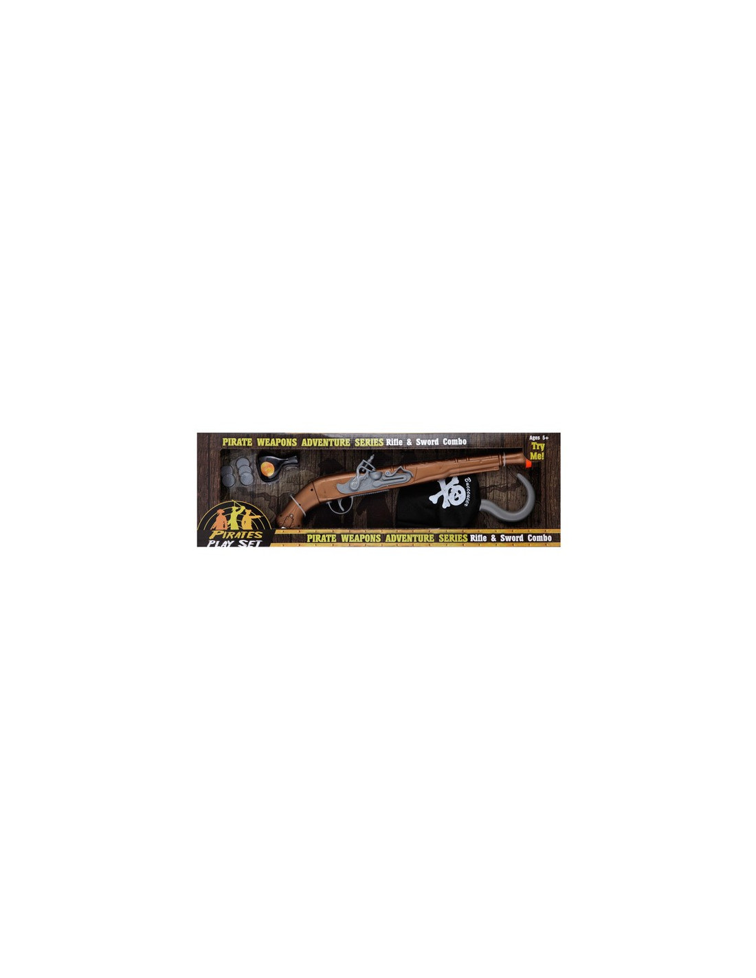 ¡Con mi botella de ron! Te convertirás en un corsario de leyenda con este set de pirata calavera. Compuesto por un trabuco de la época que al disparar emite sonido, garfio de tela con una calavera impresa y bolsa con monedas para que guardes tu preciado botín, este kit es sin duda pieza indispensable para las batallas en alta mar.