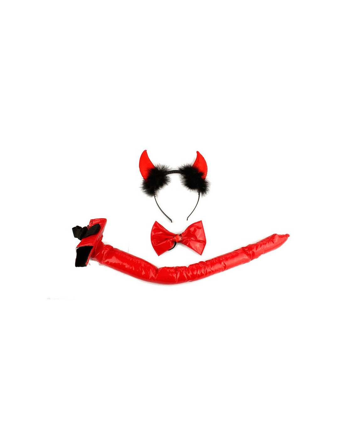 Set Demonio que incluye rabo, diadema con cuernos y pajarita.