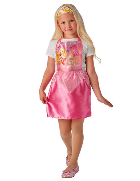 Set disfraz princesa Disney económico que incluye un vestido a modo de delantal y tiara.