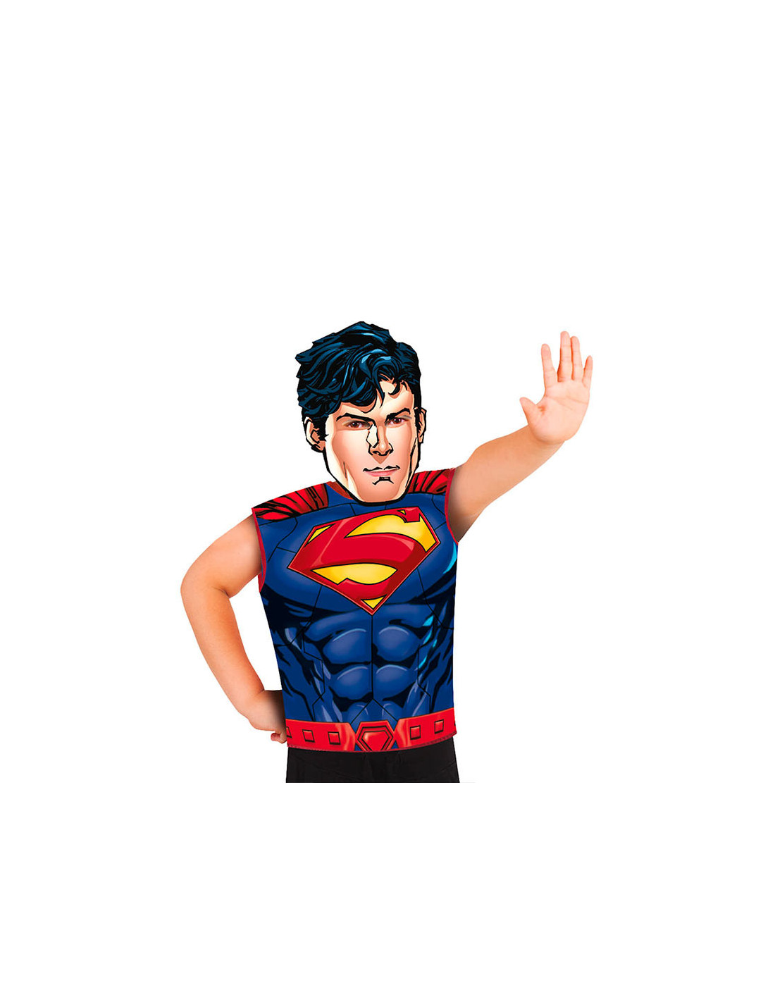 Set disfraz superhéroe económico para niños que incluye camiseta sin mangas y máscara de cartón.