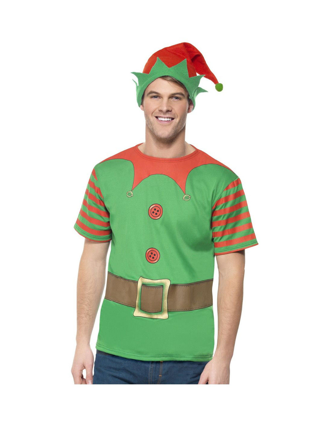 Sorprende a tus amigos y familia con este conjunto de elfo navideño para vivir las navidades de forma más divertida con los clásicos colores de la Navidad.