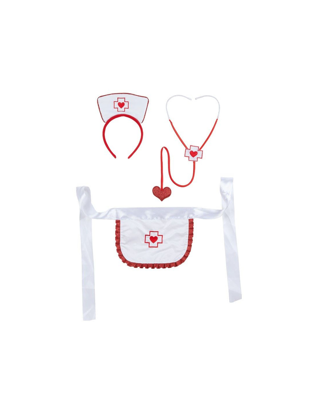 Set enfermera sexy que incluye delantal, fonendo y diadema.