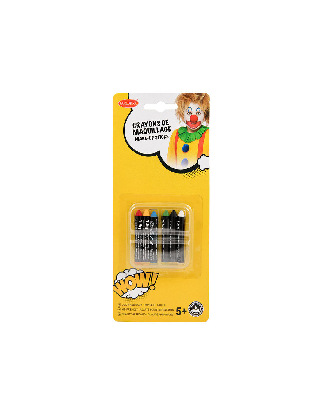 Set lápices de maquillaje que incluye 6 lápices de 1,6 gramos cada una en color rojo, amarillo, azul, verde, negro y blanco.
