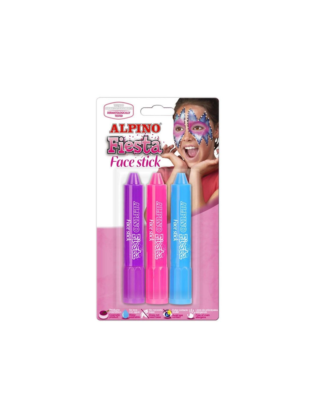 Set de tres barritas de maquillaje para complementar tu disfraz. La barra de maquillaje sale cuando giras la base del aplicador, como si fuera un pintalabios. un sistema muy recomendado para niños ya que facilita que no se manchen. Se aplica directamente sin crema base y seca rapidamente pudiendo volver a pintar sobre el mismo sin que se difumine. Se limpia con un paño humedo. Cumple todos los requisitos sanitarios. Incluye los colores: lila, rosa y cyan. Barritas de 5gr.