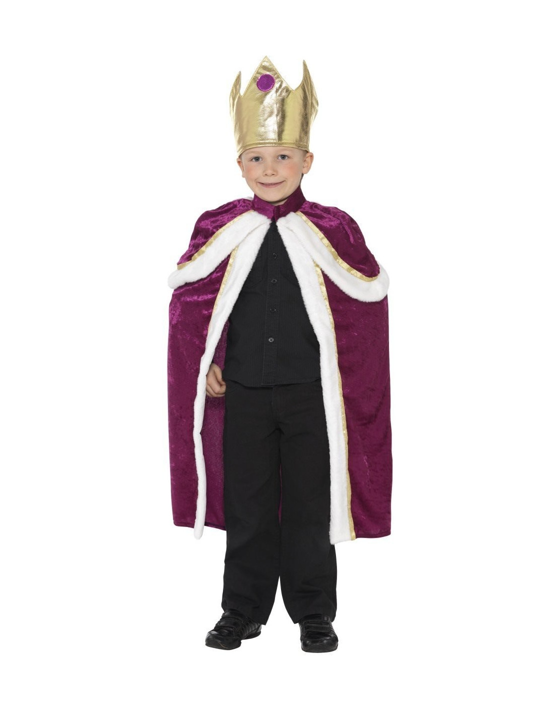 El set de Rey incluye una capa morada y una corona real, talla infantil.