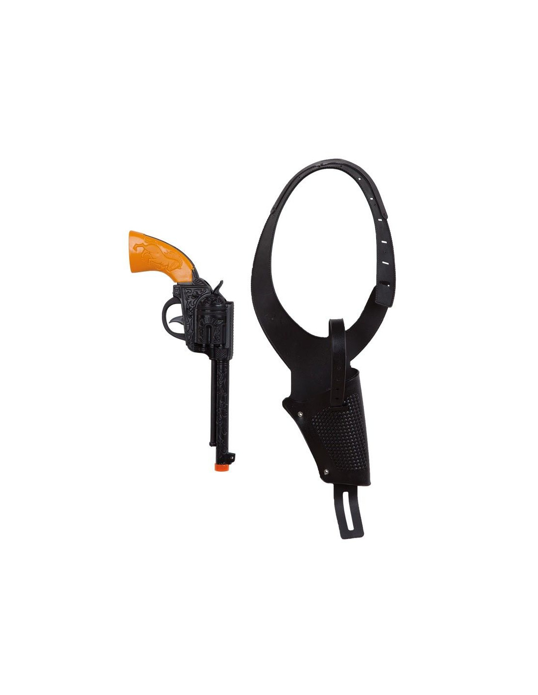 Complementa tu disfraz de vaquero o policía secreta y conviértete en el más rápido del Far West con esta sobaquera con pistola. Dimensiones de 28x13 cm. Incluye una funda de pistola y revólver con motivos decorativos del Lejano Oeste. Ideal para tus fiestas de indios y vaqueros.