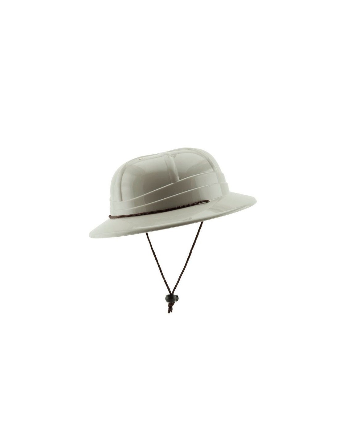 Vive un safari diferente con este sombrero de explorador. Fabricado de plástico, en color beige, y con una cuerda que permite ajustarlo y sostenerlo sobre la cabeza, este gorro salacot es ideal para realizar expediciones a los lugares más divertidos.