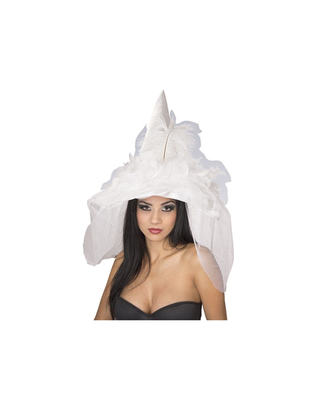 Vístete de novia en tu fiesta de Halloween más loca con este sombrero de novia bruja. Incluye sombrero completo de novia. Ideal para tus fiestas de Halloween o disfraz de novia zombie.