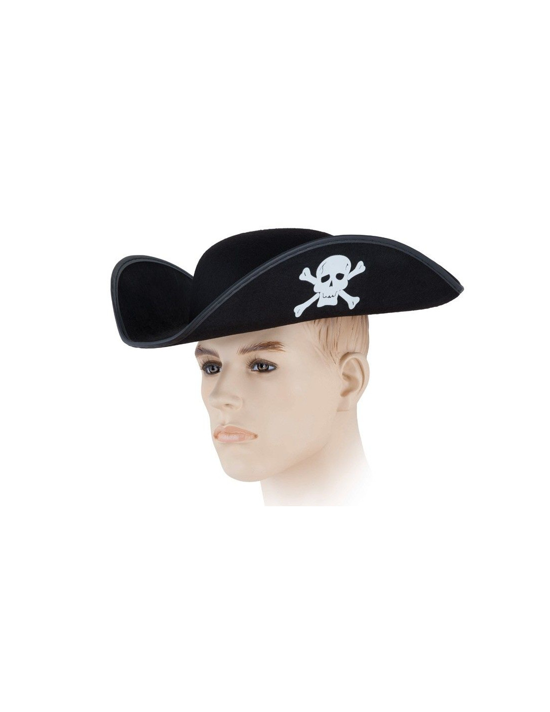 Sombrero pirata de fieltro decorado con calavera y viveado en el perímetro. Perfecto para complementar tu disfraz de bucanero.