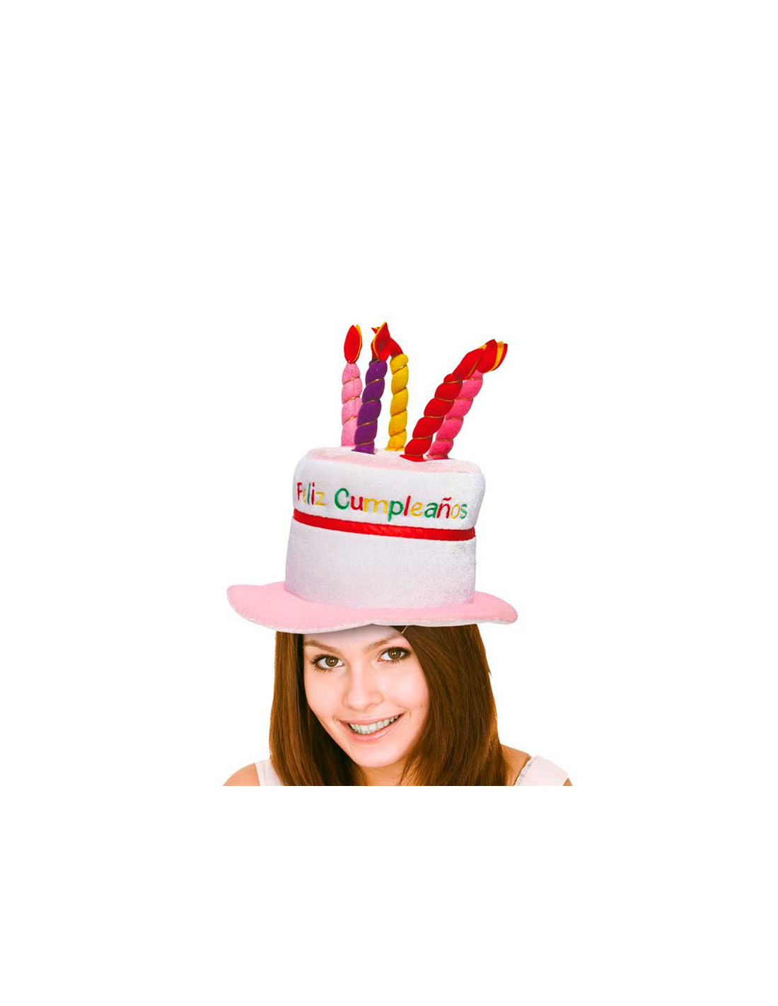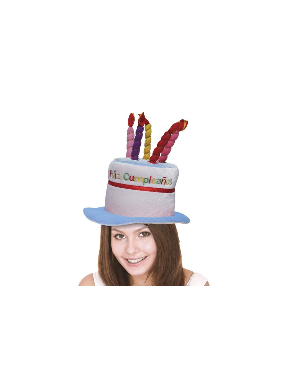 Sombrero Feliz Cumpleaños de tela con velas y texto 'Feliz cumpleaños'