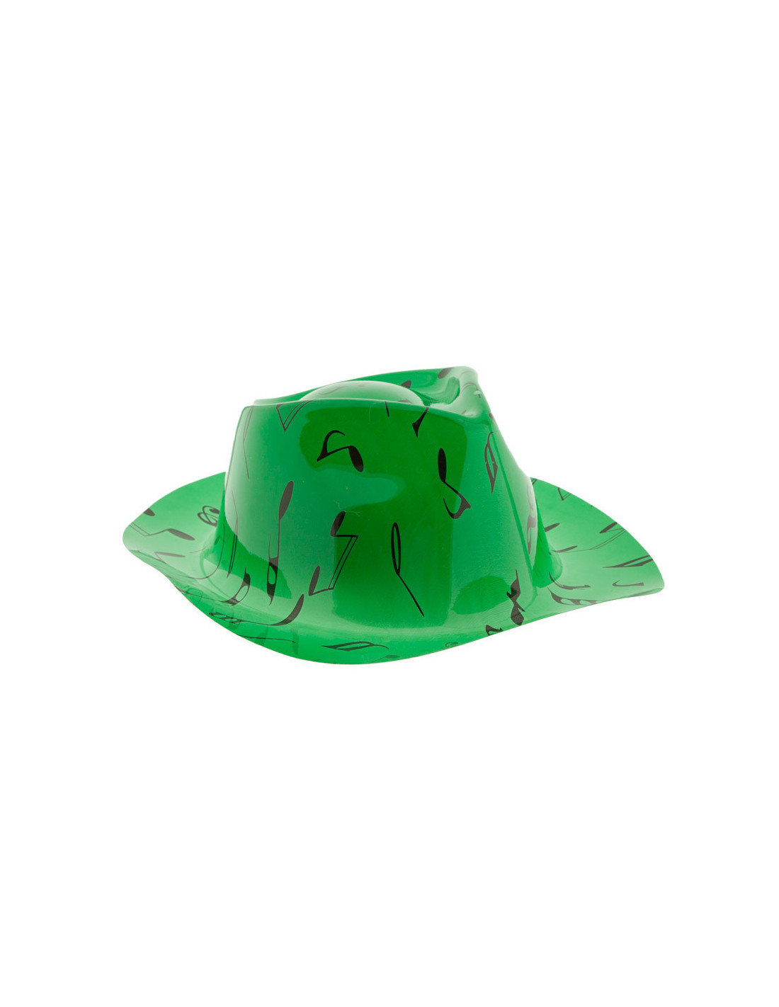 Sombrero de Gangster de ala grande. Estos originales sombreros son de plástico en colores surtidos y estampados con notas musicales.