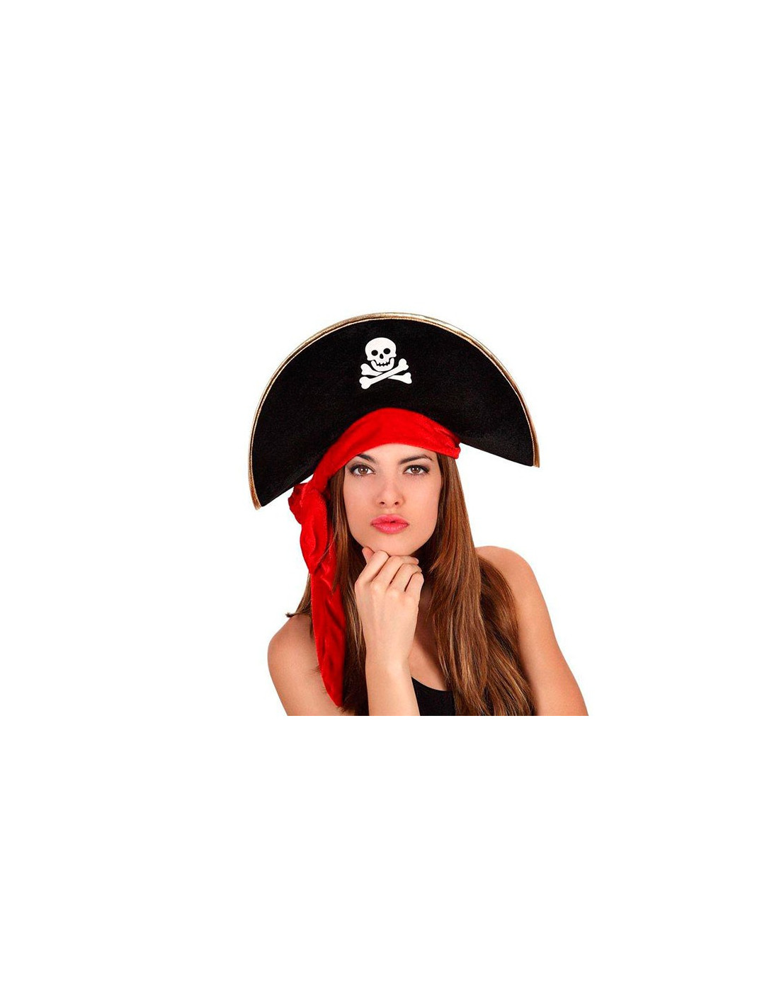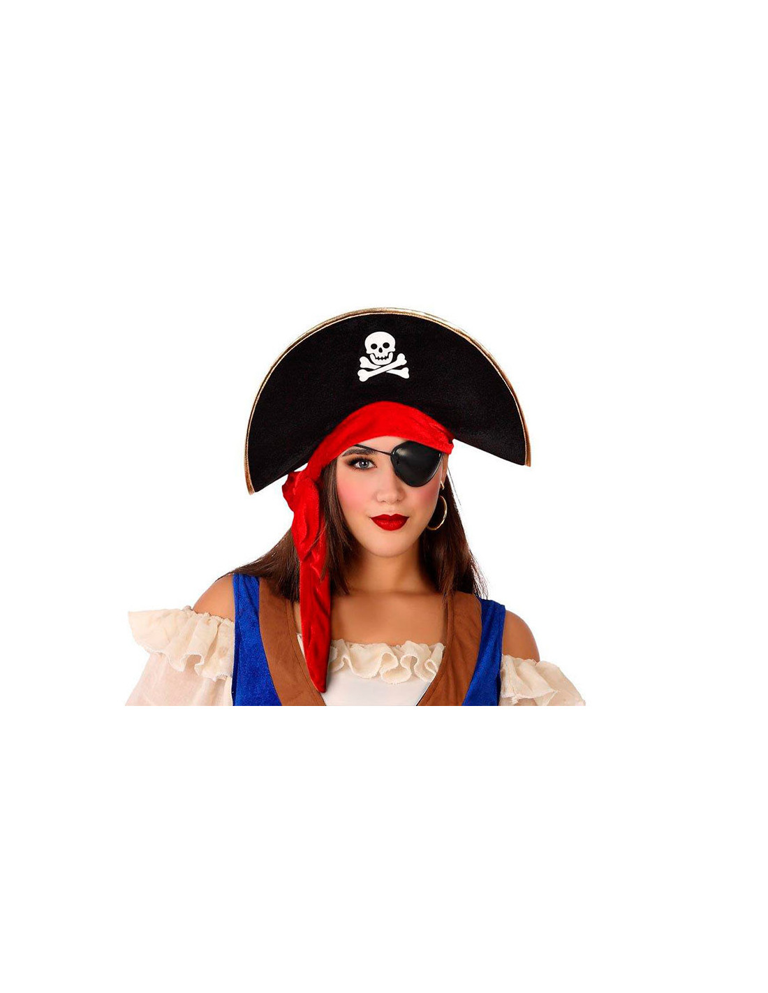 Dale un toque de distinción a tu disfraz de corsaria con este sombrero pirata calavera. Ideal para carnaval o fiestas temáticas.