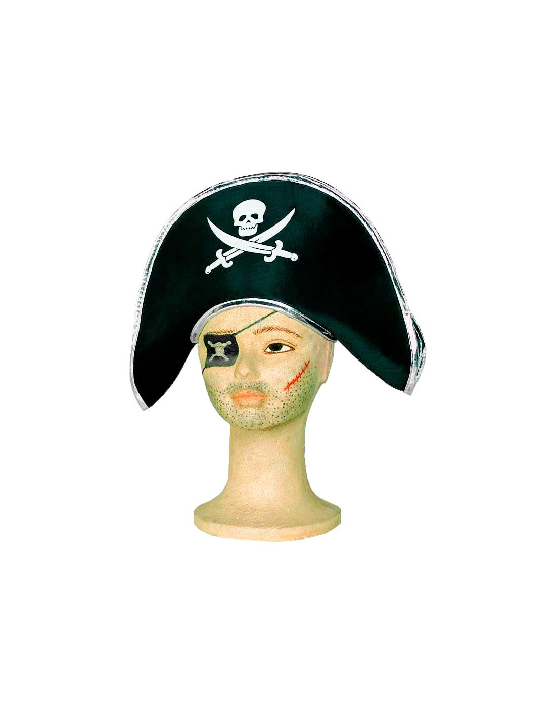 Complementa tu disfraz de bucanero con este sombrero de pirata del Caribe. Fabricado en fieltro. Incluye completo sombrero de pirata, con bordes blancos y calavera serigrafiada.