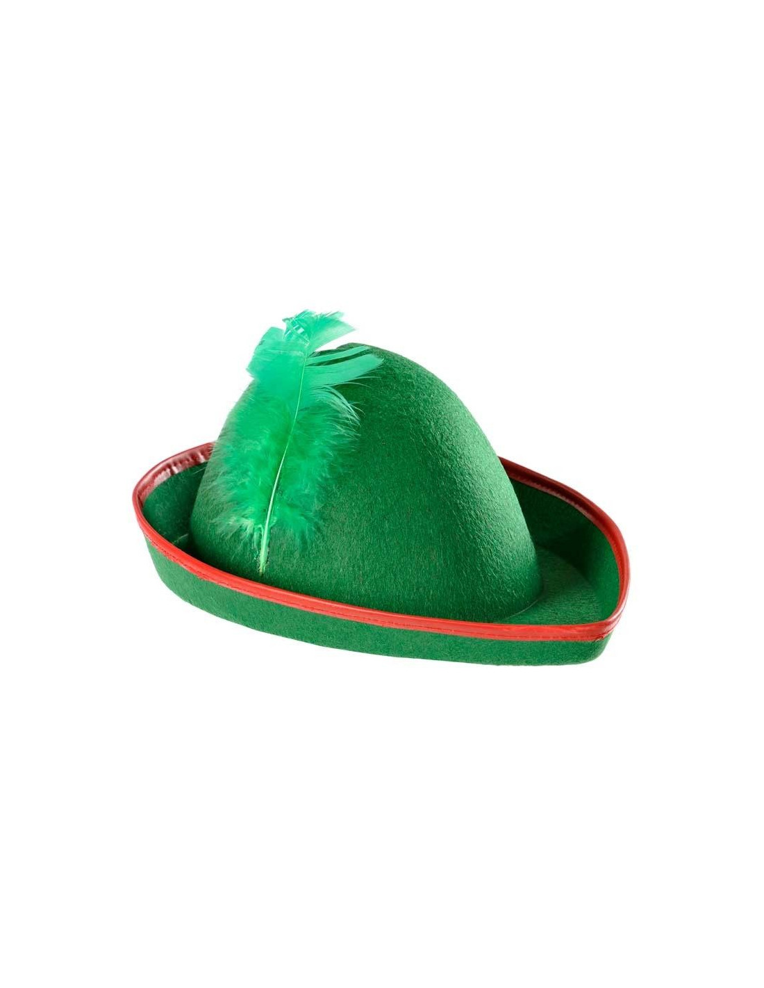 Sombrero de fieltro viveado en su perimetro y adornado con pluma, imprescindible para acompañar a tu disfraz de Robin Hood.