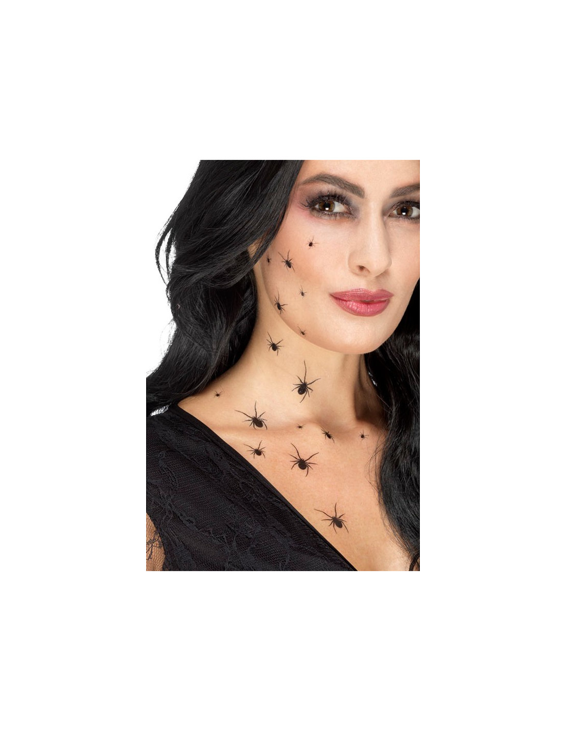 Tatuajes de arañas negras que incluye un blíster con 16 arañas.