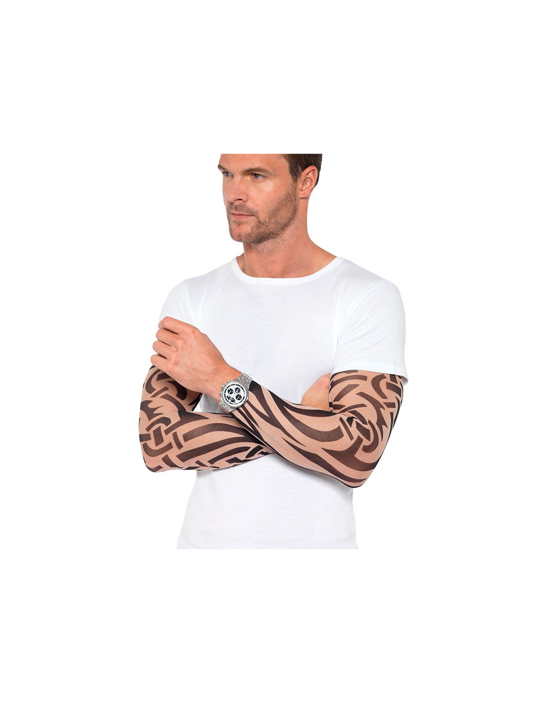 Constan de dos mangas para brazos con tatuajes negros de tipo tribal.