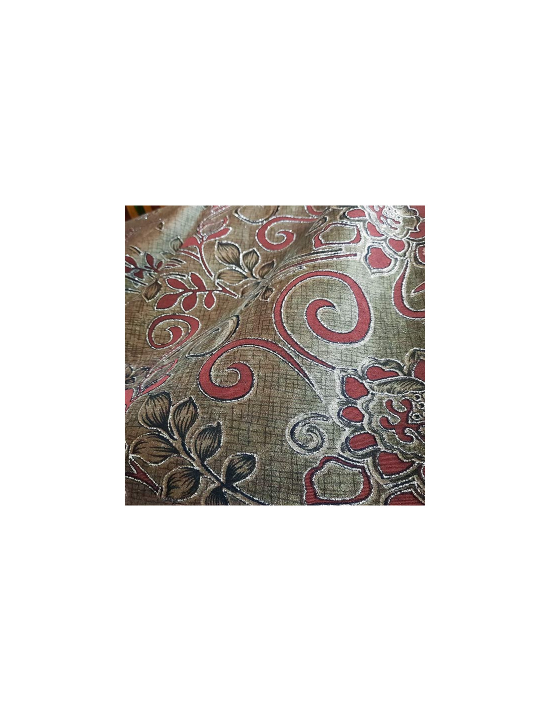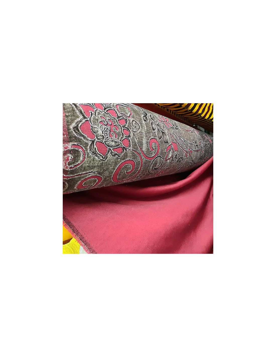 Antelina brocada con estampado de flores y adornos en plata. Ancho 150cm y composición 100%poliester.