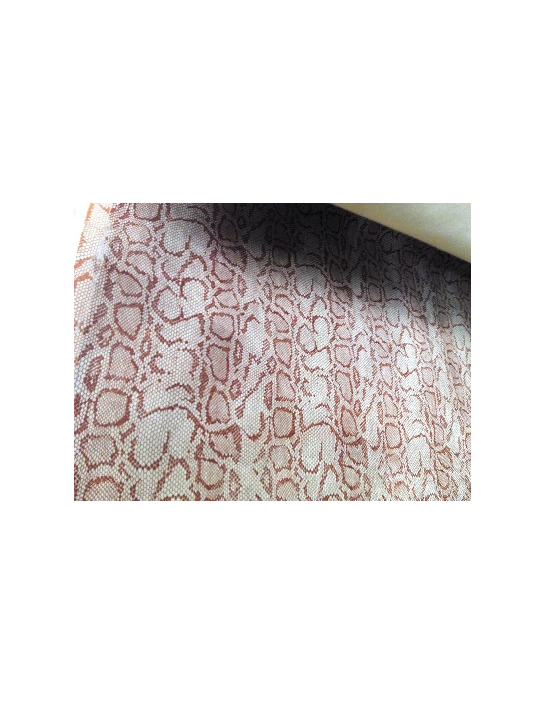 Tejido de antelina con estampado de serpiente.Tiene una anchura de 1.50m y una composición de 100%poliester.De tacto aterciopelado es ideal para la fabricación de prendas,complementos decoración..
