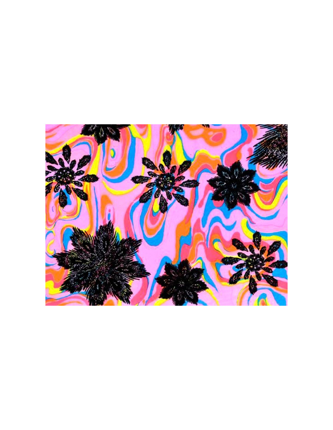 Tejido danza arcoíris con una base de color muy psicodélica, ideal para confeccionar prendas de baile.
