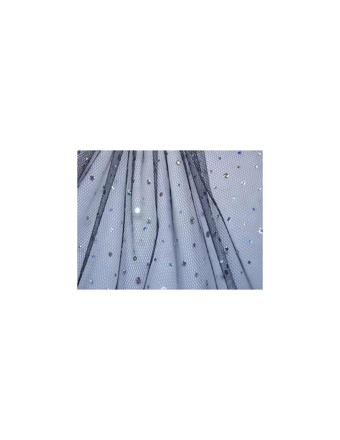 Tejido de Tul con pedrería multicolor sobre la misma, que resulta idónea para la confección de prendas de fiesta como vestidos de nochevieja o fin de año. La base de redecilla está disponible en diferentes colores.